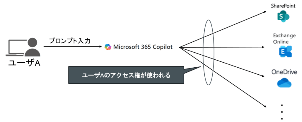 大原則として、Microsoft 365 Copilotは、その Microsoft 365 Copilot を操作しているユーザが保持する ”Microsoft 365 データへのアクセス権”に基づいて動作します。