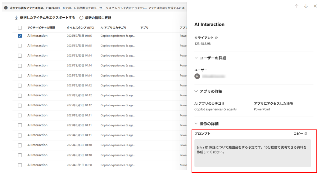 Microsoft 365 Copilot の不適切または危険なプロンプトを検出できる機能です。